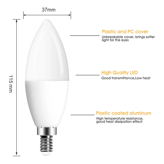 Pack of 2pcs Certification: FCC Certification: ROHS Luminous Flux: 250 - 499 Lumens Average Life (hrs): 50000 Led Bulb Type: Candle Bulb Beam Angle(°): 180° Area: 5-8㎡ Is Smart Device: No Base Type: E14 Power Tolerance:...Regular price $33.00 -