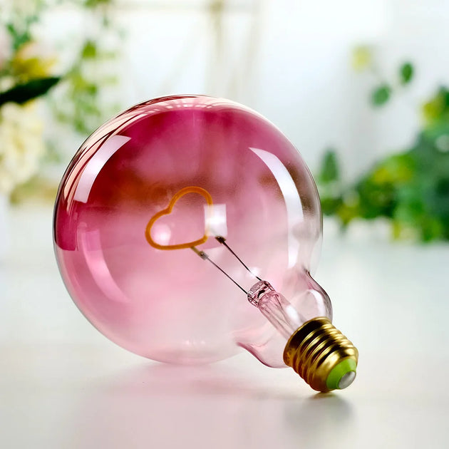 Vintage Led Bulb Large Globe Pink Heart Filament