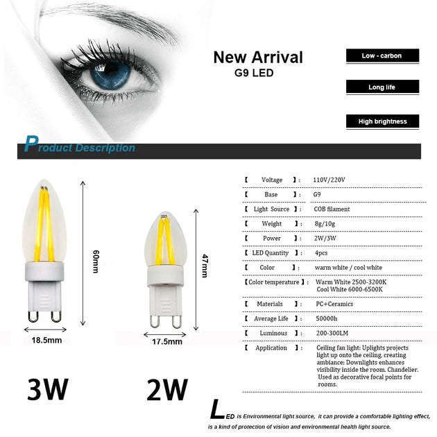 10pcs G9 LED Bulb for Chandeliers