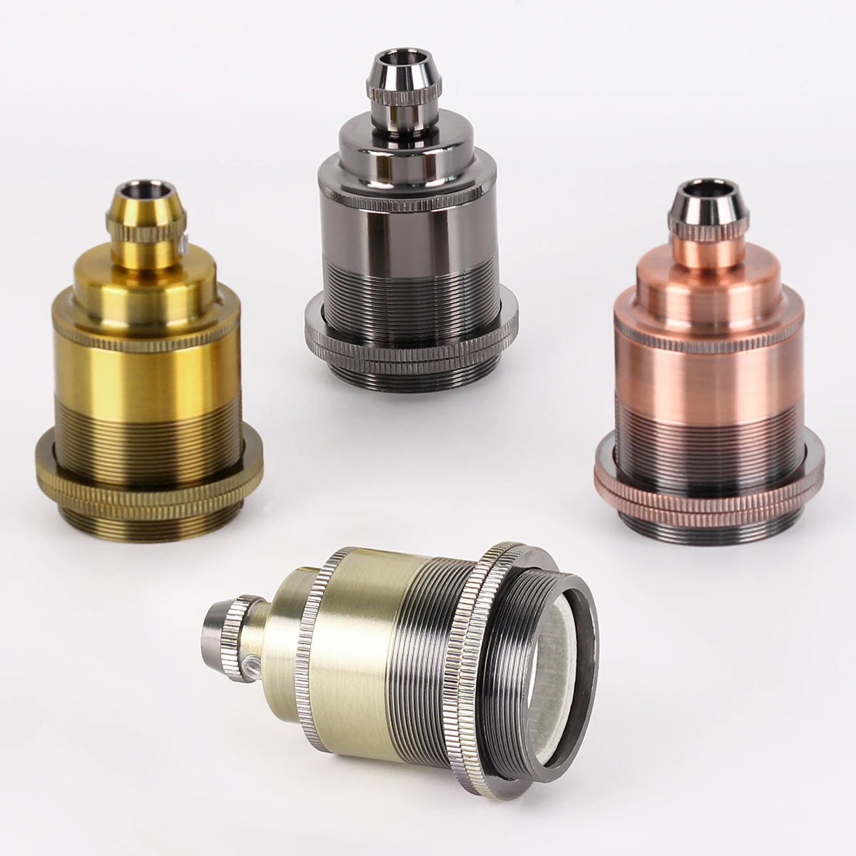 Our lamp holder features a premium coating that is smooth, shiny, and visually striking—perfect for enhancing any decor. The removable threaded rings allow you to pair this version with a lampshade or other decorative elements, creating endless design possibilities (compatible with E27 connectors). Elevate your space with this refined lamp holder and set a unique, ambient mood.